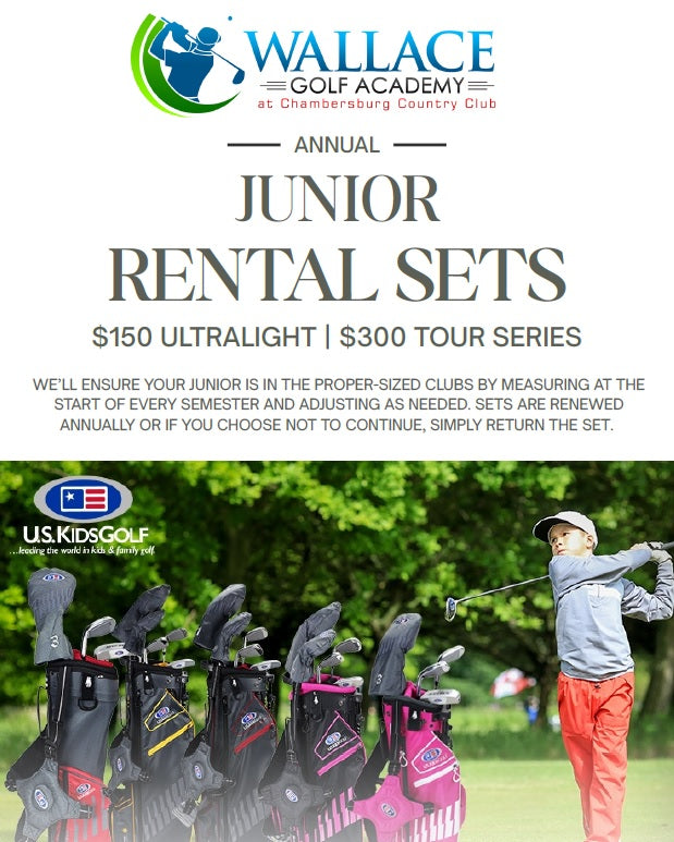 12-month rental - US Kids Set includes a stand bag - ($150 for Ultralight, $300 for Tour Series per season)